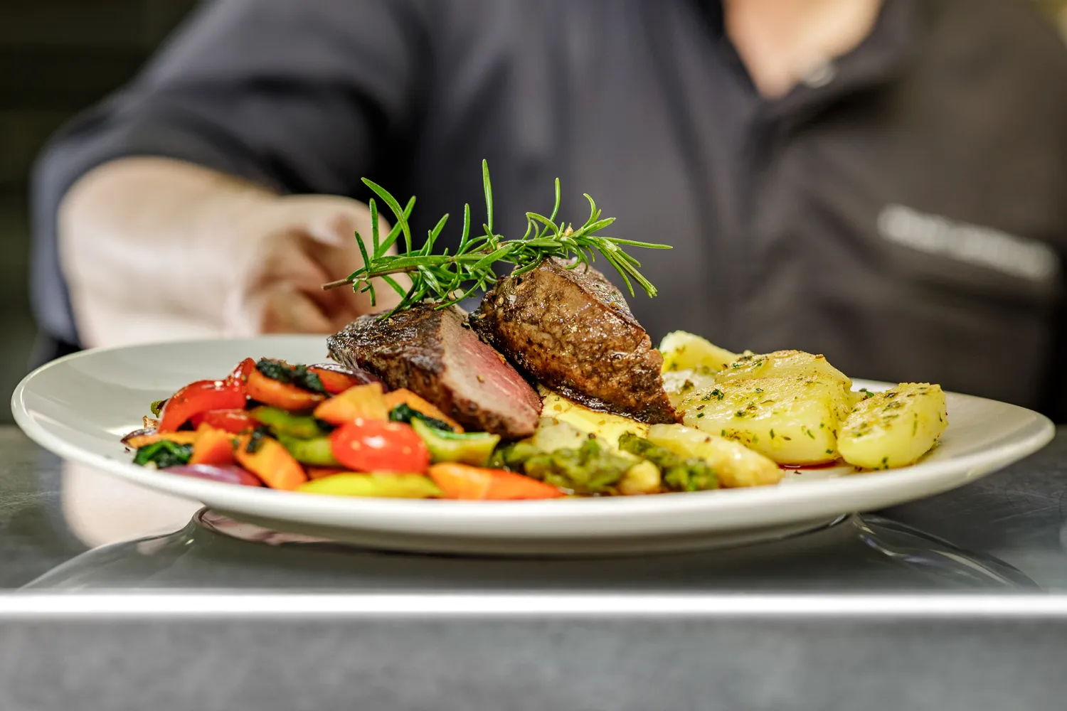 Unser fleißiges Küchenteam zaubert stets das Beste auf Ihren Teller. Auf unserer Speisekarte und abwechselungsreichen Wochenkarte finden Sie saisonale Gerichte, zubereitet mit frischen Lebensmitteln von regionalen Produzenten. Gerne kochen wir auch für Vegetarier, Veganer und Menschen mit Nahrungsmittelunverträglichkeiten.